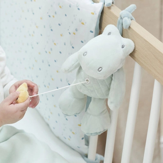 Laganim povlačenjem uzice oglašava se nježna uspavanka La‑Le‑Lu koja smiruje bebu i pomaže joj lakše zaspati.