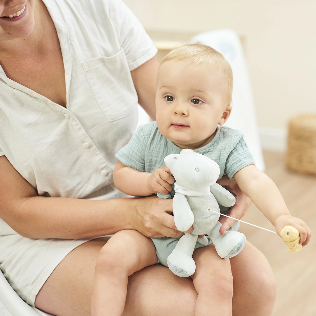 Glazbeni plišani krokodil NATTOU Romeo nježan je prijatelj za krevetić i putovanja. Mekani materijali i pažljivi šavovi osiguravaju sigurno maženje, dok nježna melodija La‑Le‑Lu pomaže stvoriti mir i ugodu prije spavanja. Zahvaljujući promišljenim elementima za hvatanje, igračku lako drže i male ručice.