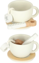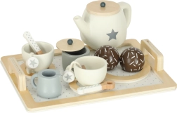 Elegantni drveni čajni set u neutralnim bojama sa zvjezdanim detaljima idealan je za dječje čajne zabave. Djeca mogu posluživati čaj, mlijeko i “desert”, vježbati pristojnost i komunikaciju te istodobno razvijati maštu.