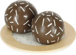 - 2× šalica, 2× tanjurić, 1× poslužavnik, 1× čajnik s poklopcem, 1× posudica za šećer, 1× vrč za mlijeko, 2× drveni “donut”, 2× čajna vrećica, 2× žličica