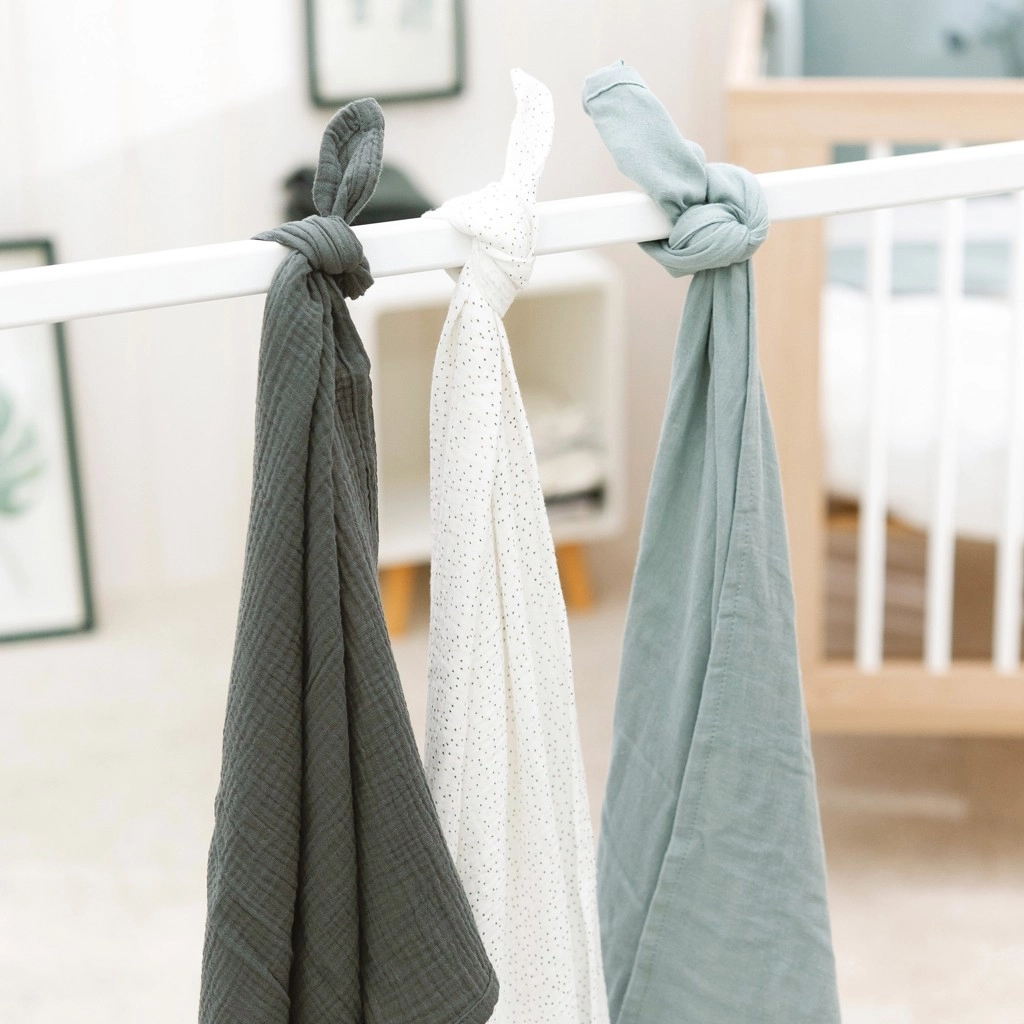 Mekane muselin tetre Nattou u pakiranju od 3 komada idealne su za svakodnevnu njegu bebe. One su mekane, prozračne i nježne prema osjetljivoj koži. Odlične su za povijanje, kao ručnik, plahta ili pokrivač, a također i za diskretno dojenje. Praktična dimenzija 65 × 65 cm i jednostavno održavanje pranjem na 30 °C.
