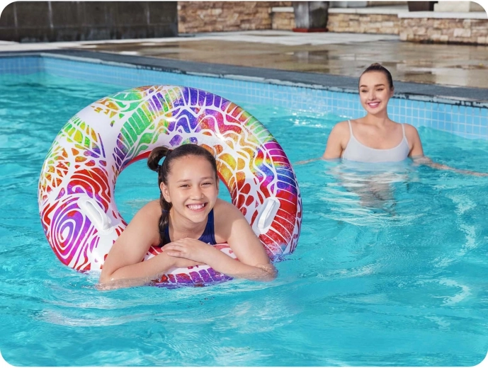 Ovaj stajliš plivaći kruh od izdržljivog PVC-a podnosi sunce i slanu vodu, pa je odličan izbor i za bazen i za plažu. Veliki promjer od 91 cm pruža udobnu potporu i bolju plovnost za djecu od 10 godina.