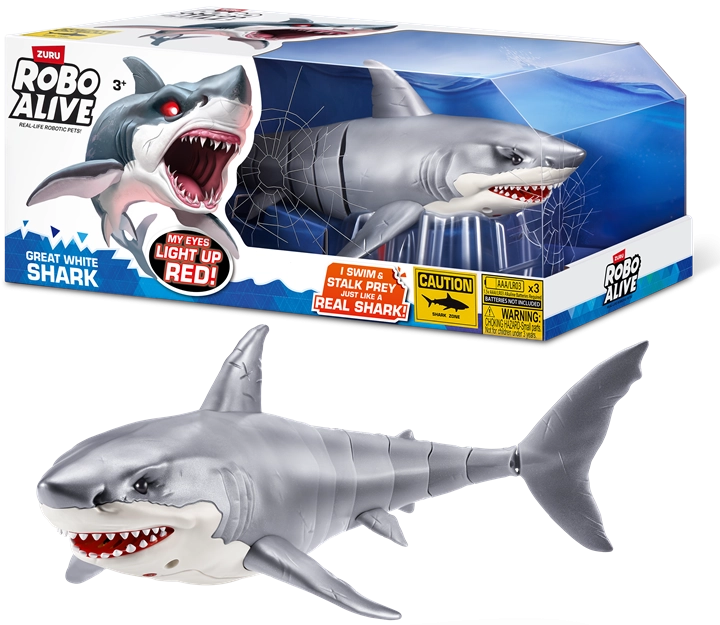 Veliki bijeli morski pas ROBO ALIVE brenda ZURU pretvara svako kupanje u akcijsku pustolovinu. Nakon uranjanja u vodu automatski se aktivira i pliva kao pravi morski predator. Djecu će oduševiti spoj glatkih, realističnih pokreta i svjetlećih očiju, koji pojačavaju dojam podvodnog lova.