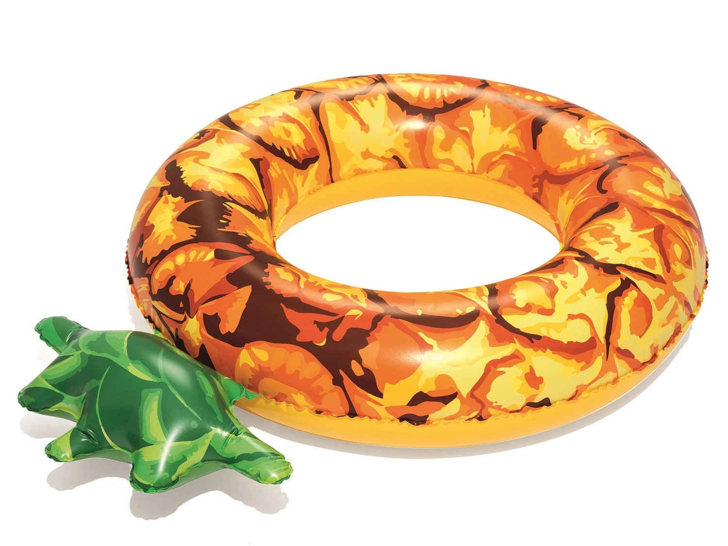 Napuhujući plivaći kolut u stilu sočnog ananasa osvaja na prvi pogled. Izrađen je od kvalitetnog PVC-a koji je otporan na UV zračenje i slanu vodu, pa bez brige možete uživati u zabavi na moru i u bazenu. Zahvaljujući velikim dimenzijama 116 × 88 cm kolut je udoban za tinejdžere i odrasle (od 12 godina).
