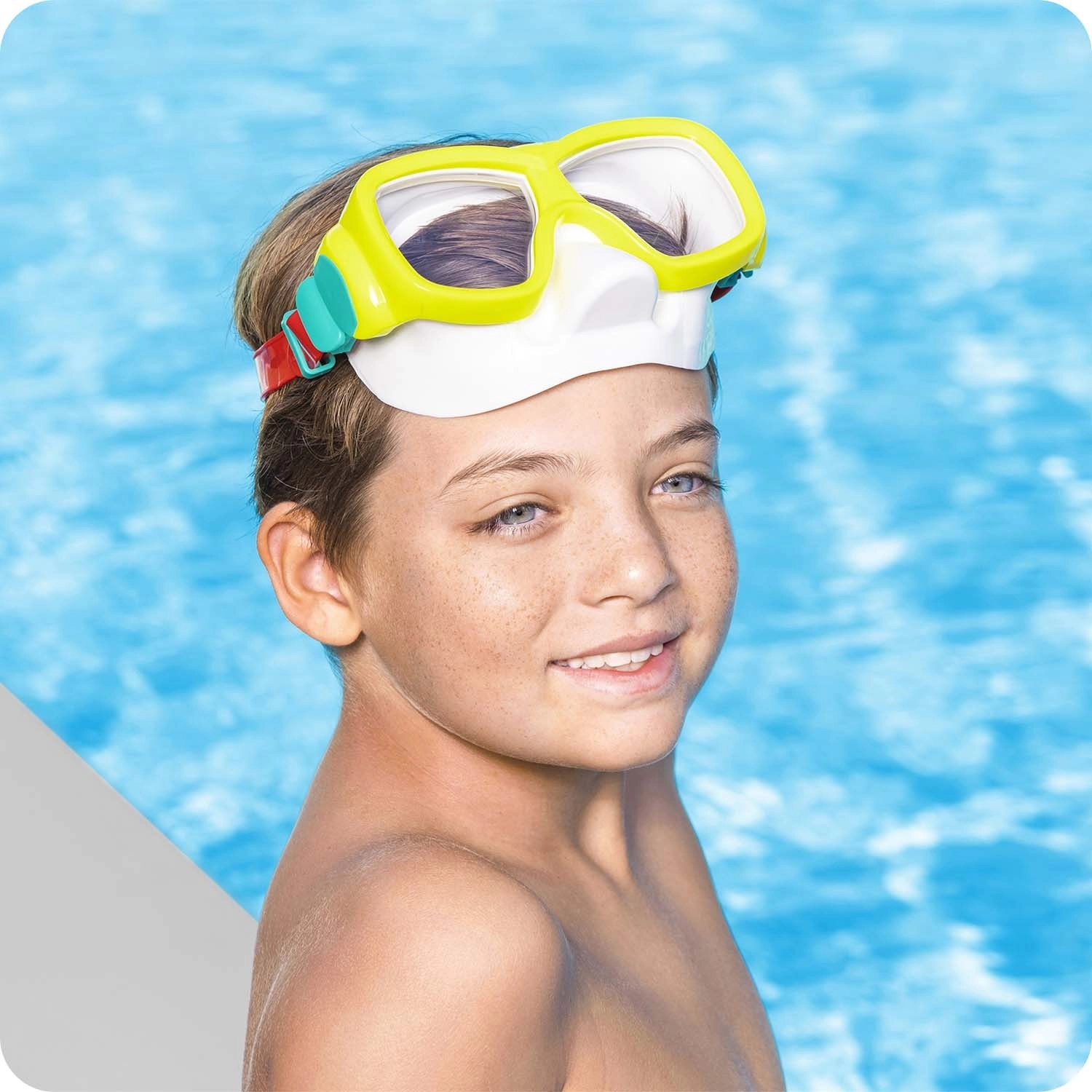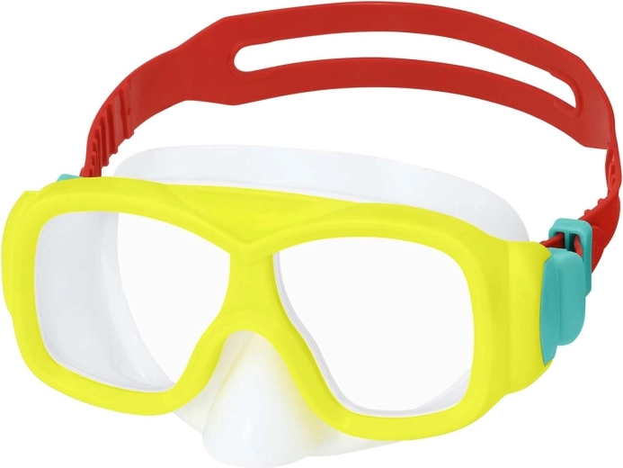 Ova žuto-crvena dječja ronilačka maska Bestway osmišljena je za male plivače i istraživače. Polikarbonatne leće s UV premazom pružaju otpornost na udarce i jasan pogled, dok se mekana suknjica udobno prilagođava obliku lica i pomaže spriječiti propuštanje vode.