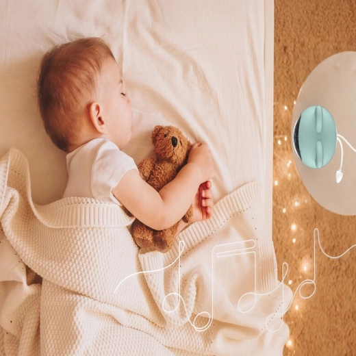 Jednostavna instalacija s fleksibilnim držačem omogućuje postavljanje na zid, strop ili dječji krevetić. Minimalistički dizajn sa silikonskom maskom u obliku medvjedića siguran je i ugodan za dječju sobu.