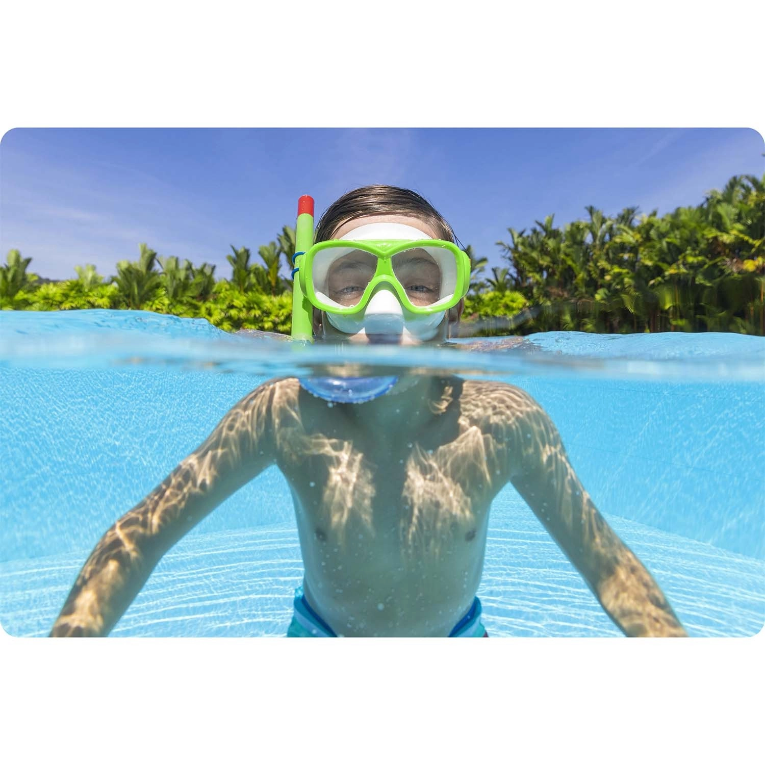 Uživajte u ljetu punim plućima s BESTWAY setom za ronjenje na dah u zelenoj boji. Set uključuje masku s polikarbonatnim lećama i UV zaštitom te disalicu s udobnim silikonskim usnikom. Zahvaljujući širokom vidnom polju, vodonepropusnom prianjanju i podesivom remenu dobit ćete izvrstan pregled i udobnost. Disalica ima gornji štitnik protiv prskanja vode, usnik je bez lateksa i ugodan za usta.