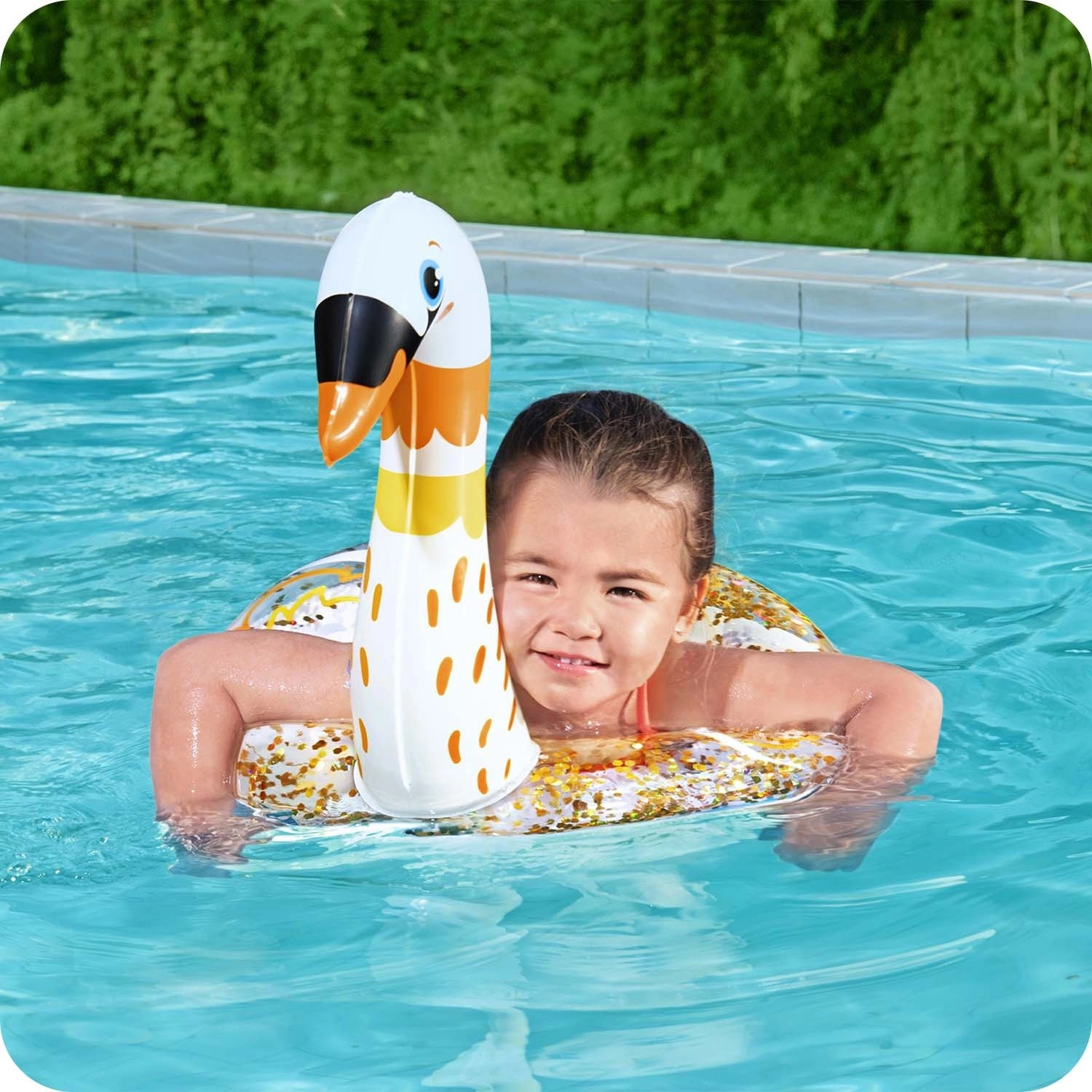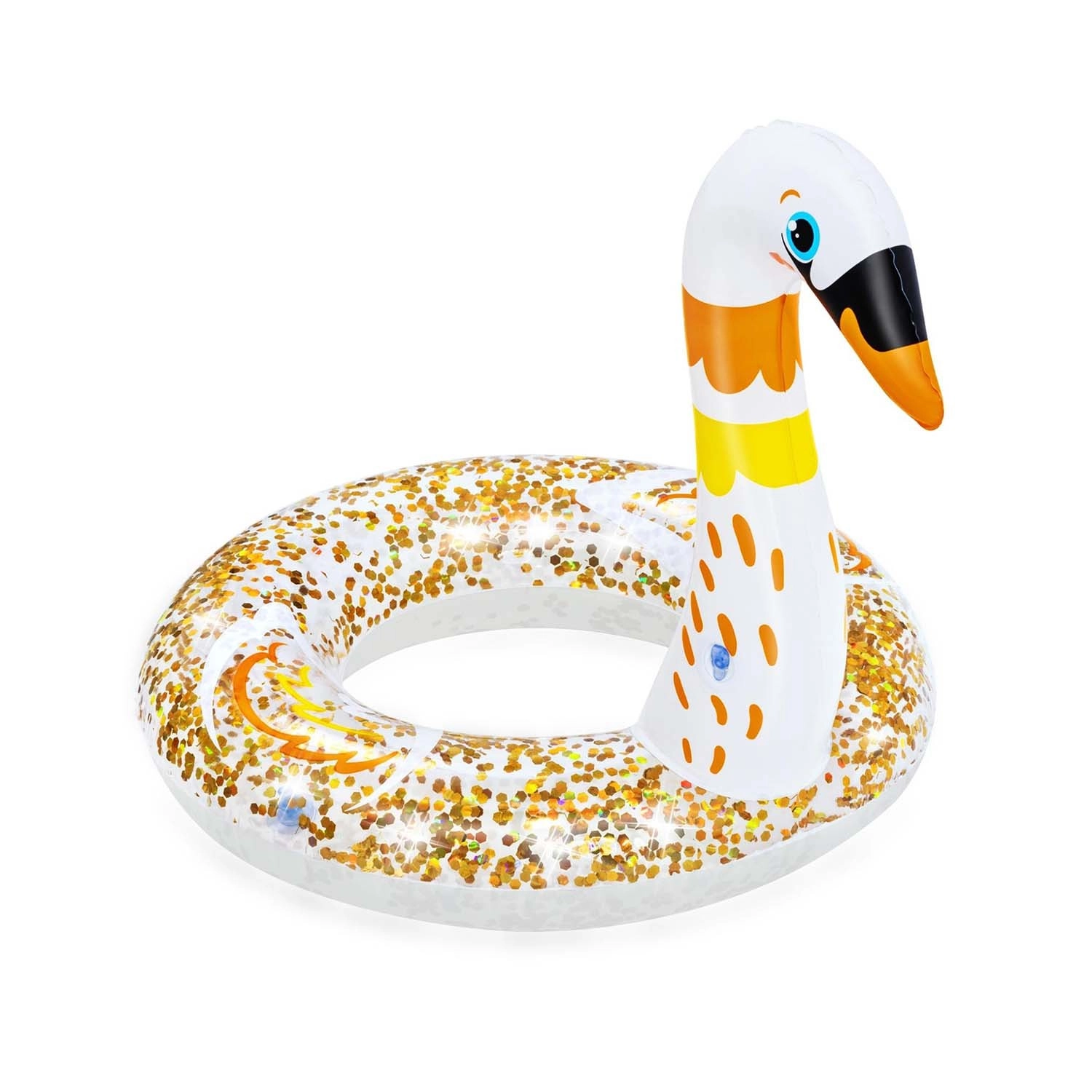 Učinite kupanje zabavnijim uz razigrani napuhujući prsten BESTWAY u obliku labuda ili flaminga. Izdržljiv PVC materijal, dvostruka zračna komora i šljokice u prstenu osiguravaju sigurnu i zabavnu igru u vodi te učenje plivanja za djecu od 3 do 6 godina.