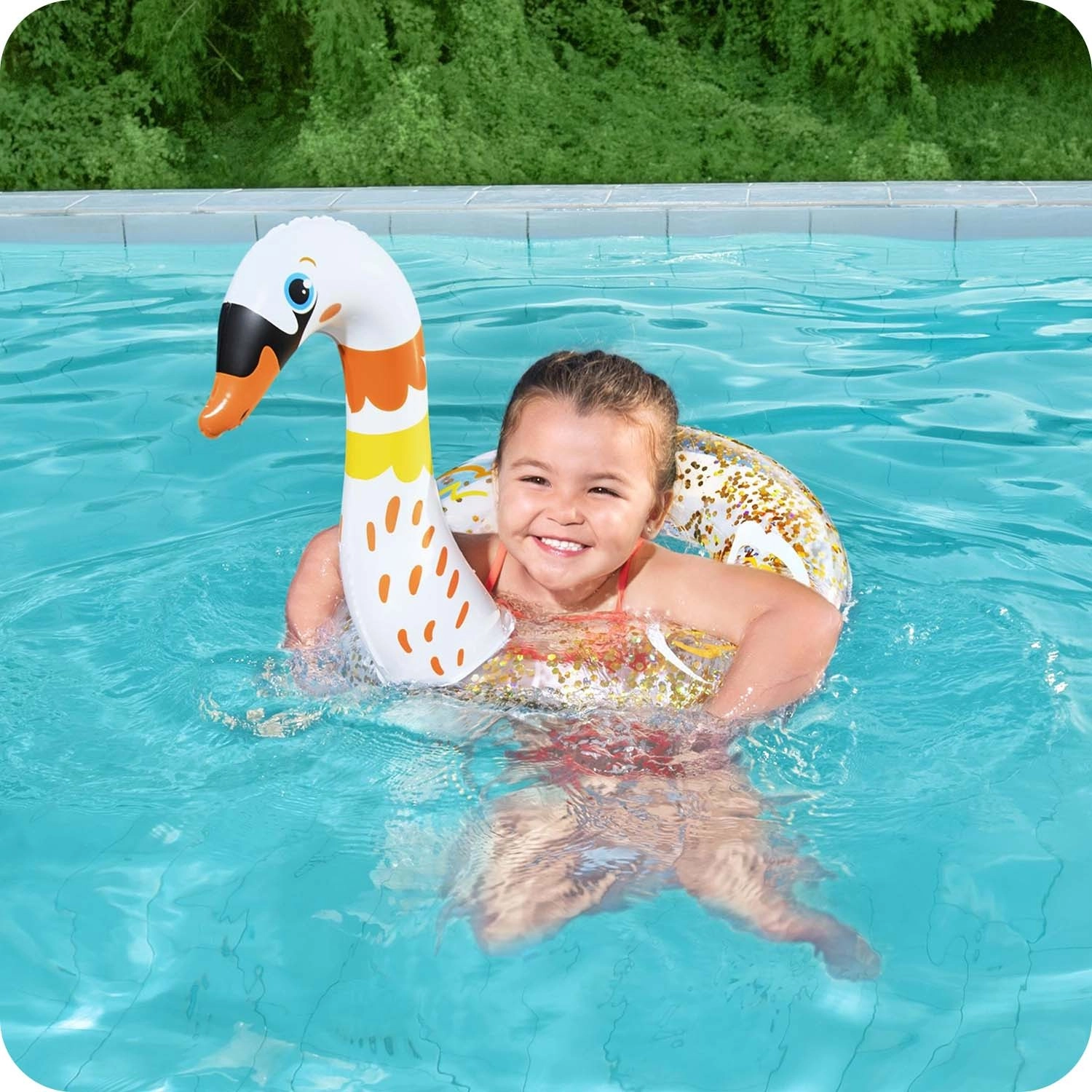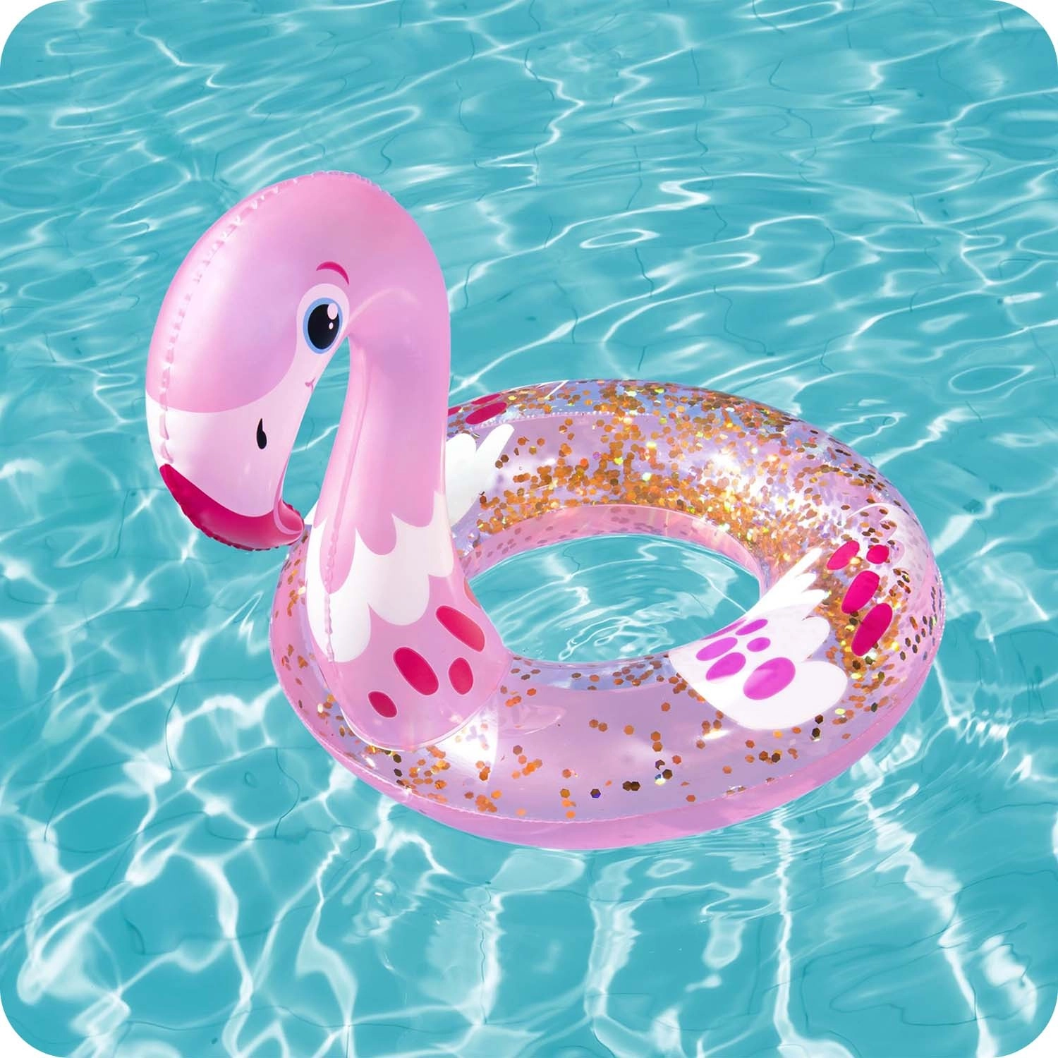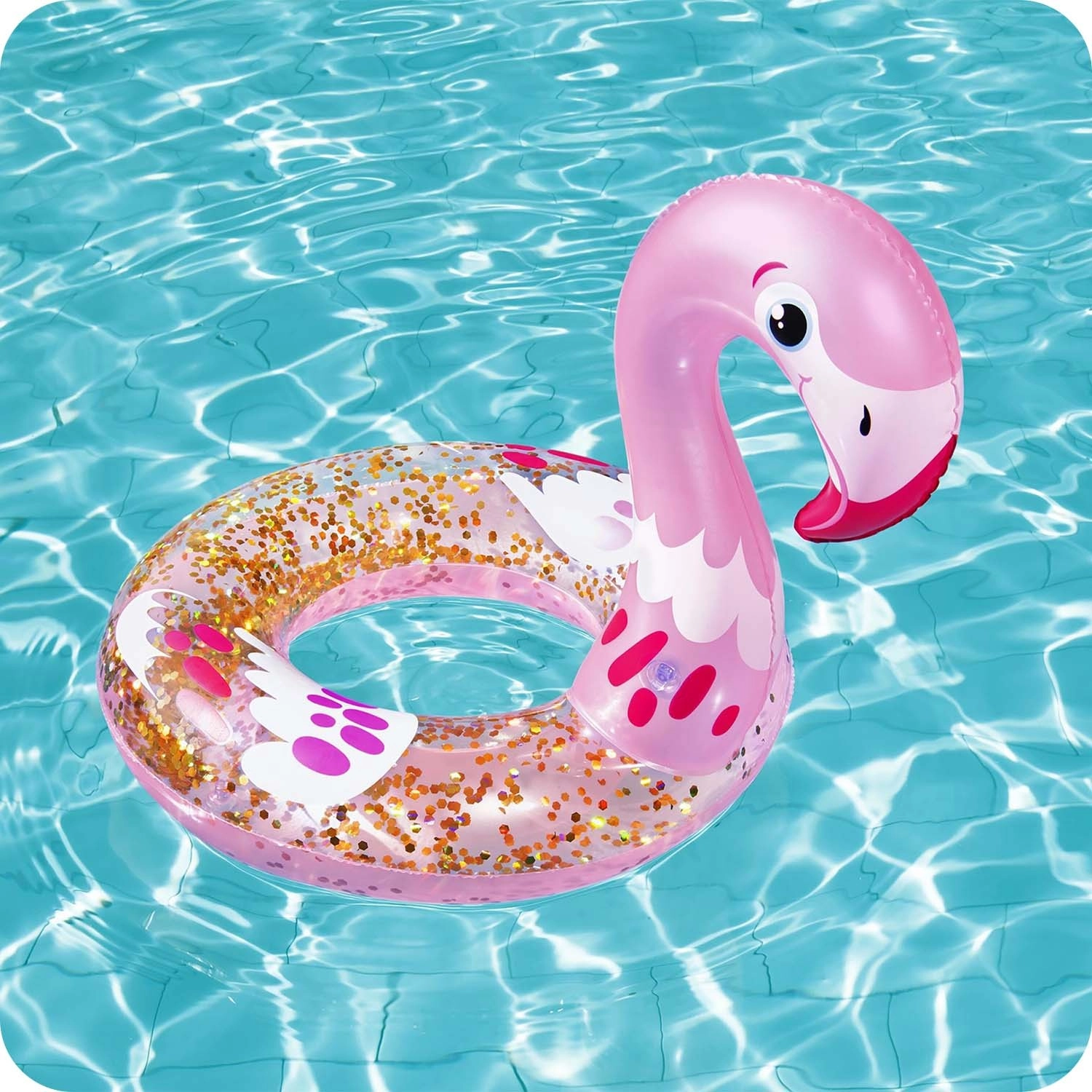 Prozirni prsten s umetnutim šljokicama stvara efektne odsjaje u vodi i na suncu, koje djeca obožavaju.