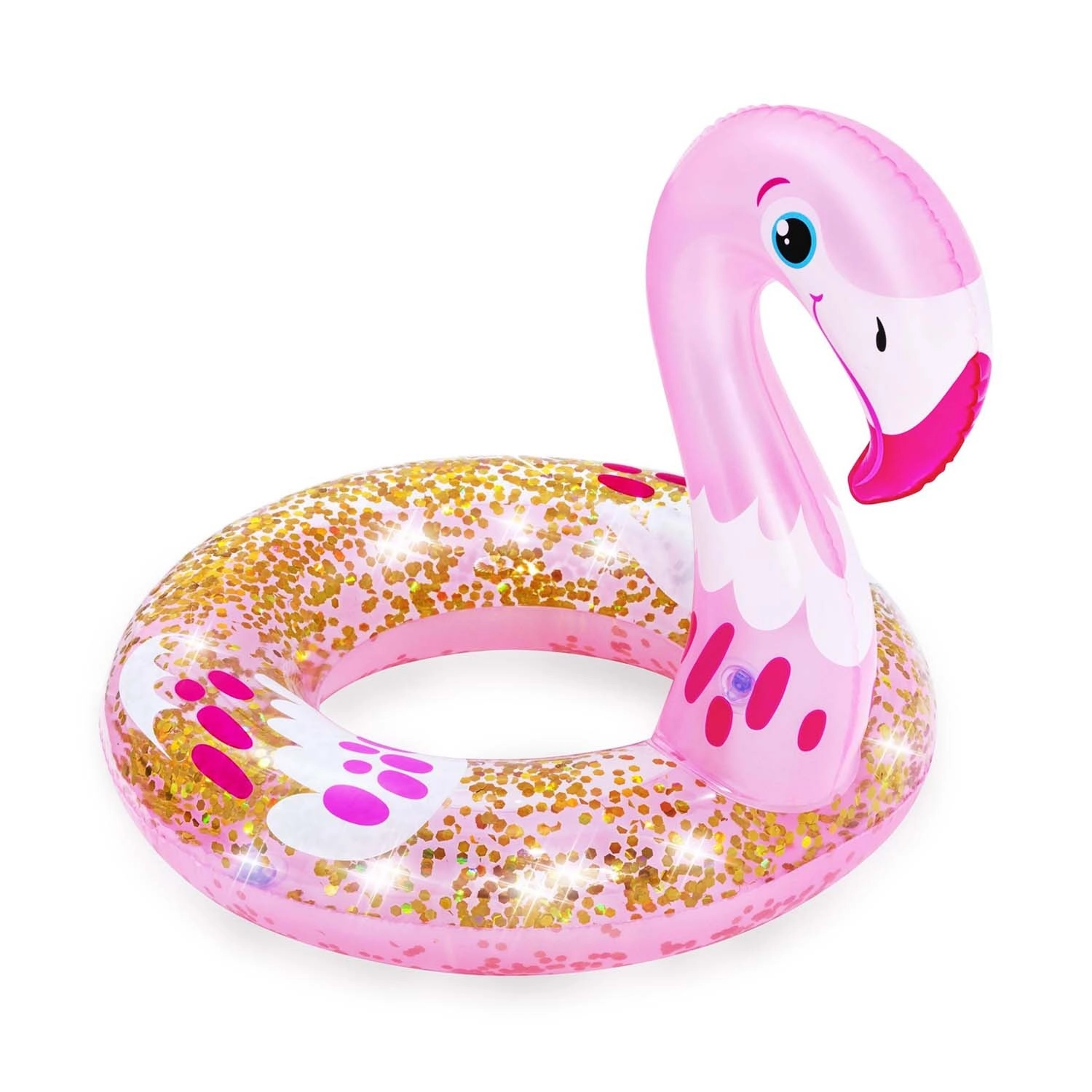 Napuhujući prsten BESTWAY pretvara svako kupanje u zabavu. Realističan oblik labuda ili flaminga odmah privlači pažnju i potiče djecu na kretanje u vodi. Prozirni dijelovi sa zlatnim šljokicama prekrasno se sjaje na suncu i daju prstenu jedinstven izgled.