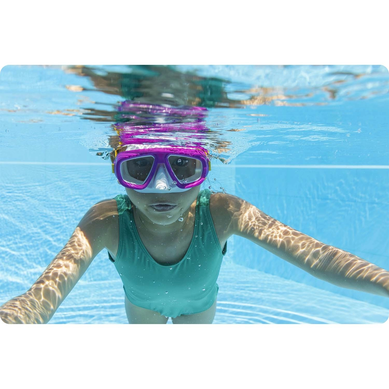 Uživajte u bezbrižnim vodenim avanturama s ružičastom ronilačkom maskom BESTWAY. Zahvaljujući polikarbonatnim lećama s UV zaštitom nudi široko vidno polje i čist pogled pod vodom. Meka prirubnica odlično se prilagođava licu, a podesivi silikonski remen osigurava sigurno i udobno pristajanje bez propuštanja. Materijali su bez lateksa – nježni prema osjetljivoj koži.