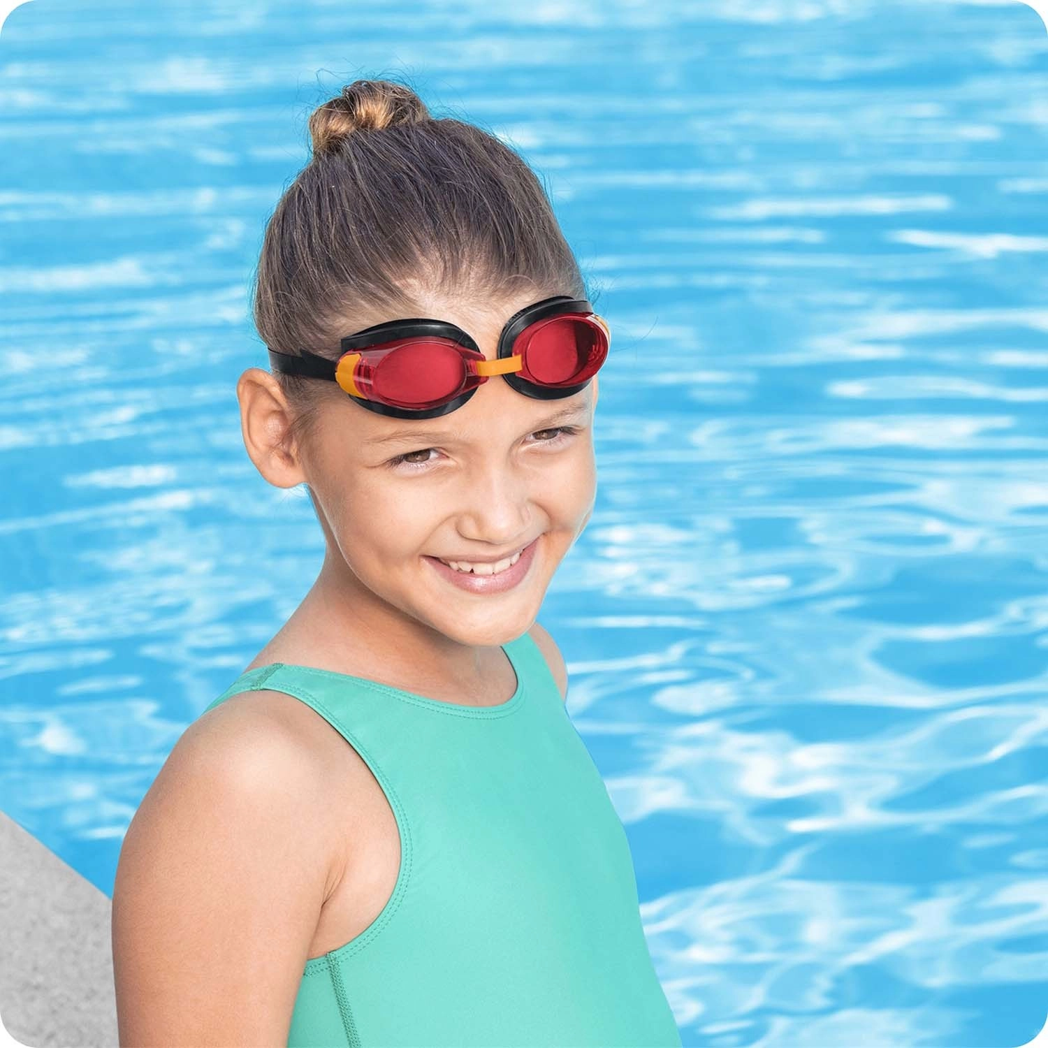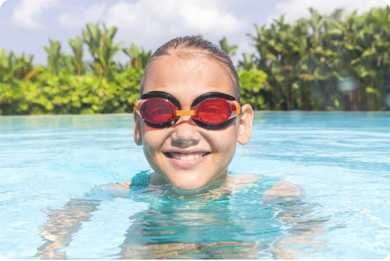 Tamnjene leće pomažu smanjiti odsjaj i štite dječje oči od štetnog UV zračenja pri plivanju na otvorenom i u zatvorenom.