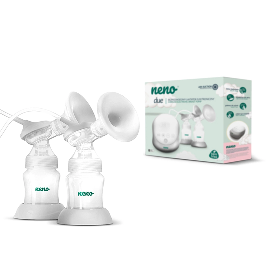 Neno Due je moderna električna pumpa za izdajanje mlijeka dizajnirana za udobnost, higijenu i učinkovitost. Zahvaljujući dvostrukom sustavu omogućuje istovremeno izdajanje iz obje dojke, što znatno štedi vrijeme i potiče ravnomjerniju proizvodnju mlijeka. Mekane prsne školjke od finog japanskog silikona osiguravaju nježan kontakt s kožom i bolje brtvljenje za učinkovitije izdajanje.