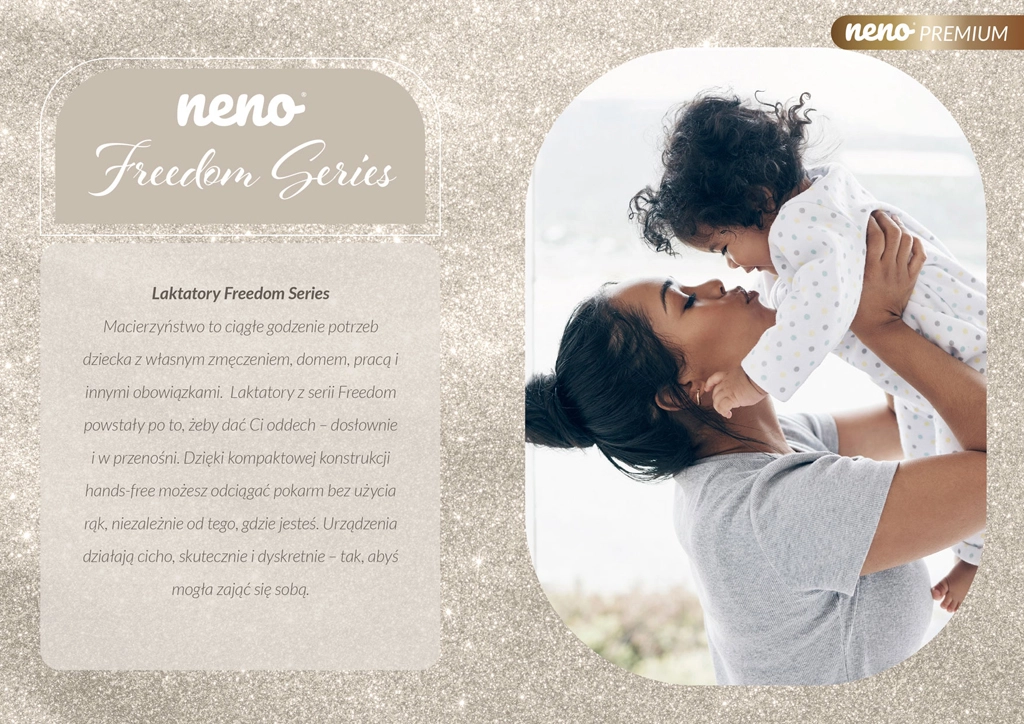 Neno Camino Pro iz serije Freedom spaja snagu dvostruke električne izdajalice s laganim bežičnim kućištem i ergonomskim, mekim školjkama. Trofazni način rada oponaša sisanje bebe – od nježne stimulacije preko dubokog izdajanju do kombinacije oboje – za veći učinak i potporu laktaciji. Integrirani mjerač vremena, pregledan zaslon i dodirno upravljanje omogućuju potpunu kontrolu jednom rukom.