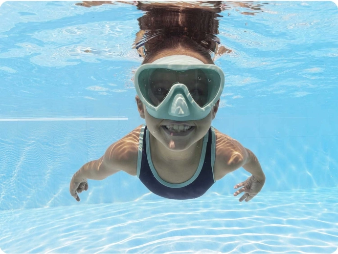 Mekani okvir prilagođava se obliku dječjeg lica i pomaže spriječiti prodor vode kako bi plivanje bilo ugodno i bez brige.