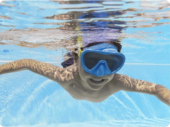 Izdržljiva leća pruža čistu sliku pod vodom i štiti oči od sunca – idealno za bazen i more.
