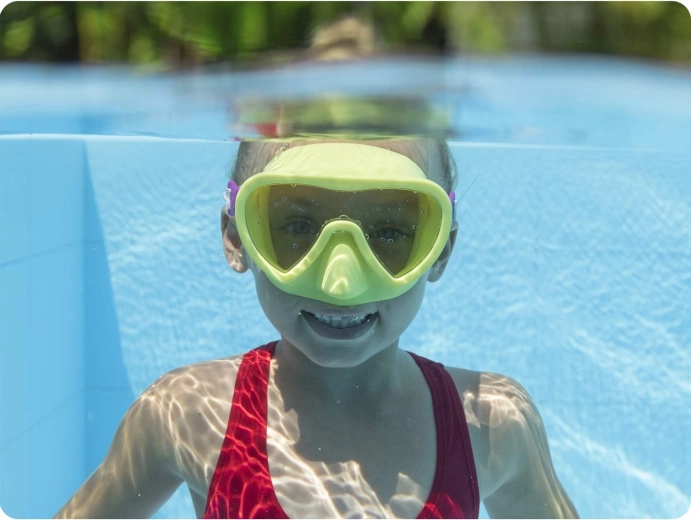 Ova lagana i udobna Bestway maska idealna je za djecu pri plivanju i šnorklanju u bazenu i moru. Mekana prirubnica prilagođava se obliku lica i pomaže spriječiti ulazak vode, dok jednostavno podešavanje remena osigurava sigurno i stabilno pričvršćenje.
