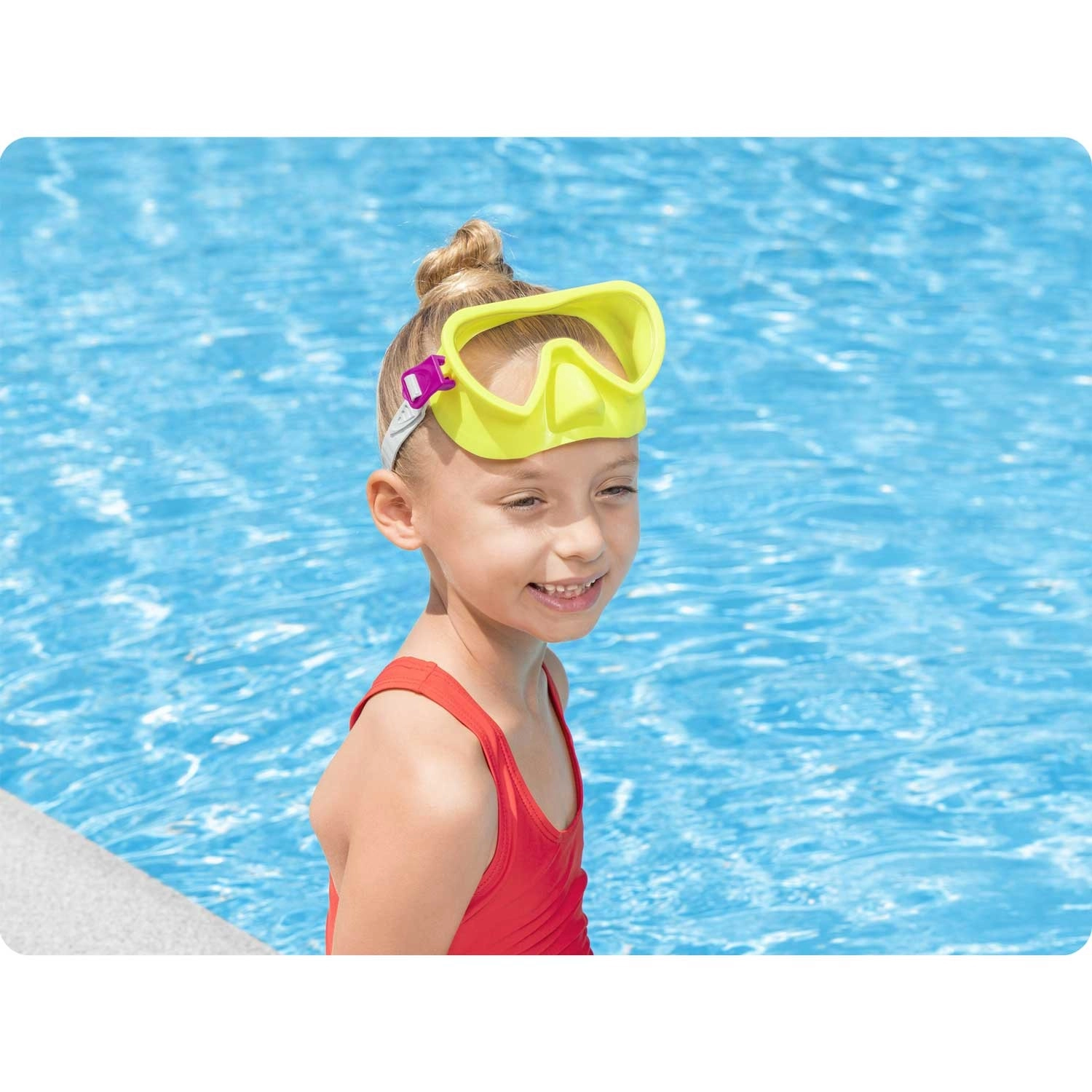 Uživajte u vodenim radostima s dječjom ronilačkom maskom Bestway u živopisnoj žutoj boji. Pruža široko vidno polje, udobno i čvrsto prianjanje na licu, a zahvaljujući podesivom remenu uvijek odlično stoji. Polikarbonatno staklo s UV zaštitom osigurava jasan pogled pod vodom i sigurnost za oči.