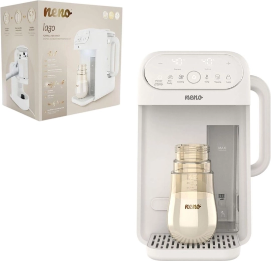 Neno Lago je pouzdan pomoćnik za roditelje koji žele pripremiti dojenačko mlijeko brzo, sigurno i bez stresa. Automatski dozira vodu u željenoj količini i održava je na idealnoj temperaturi, tako da bočicu pripremite u svega nekoliko trenutaka – izvrsno posebno noću.