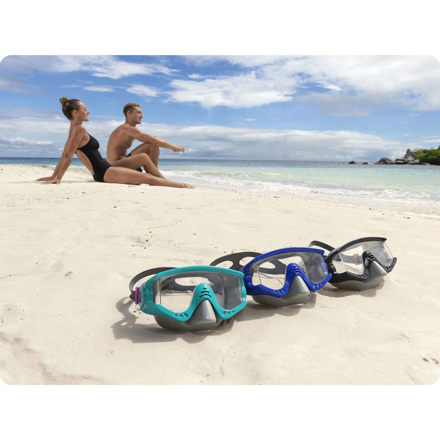 Otkrijte podvodni svijet uz udobnost i jasan pogled. Ova tirkizna ronilačka maska BESTWAY nudi široko vidno polje, polikarbonatno staklo s UV zaštitom i meki silikonski remen za sigurno, čvrsto i udobno pristajanje bez propuštanja. Univerzalna veličina i konstrukcija bez lateksa jamče izvrstan doživljaj plivanja i snorklanja.