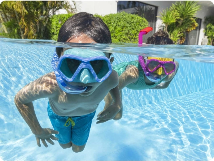 Polikarbonatne leće s UV premazom pružaju bistru vidljivost i štite oči od sunca – idealno za bazen i plažu.