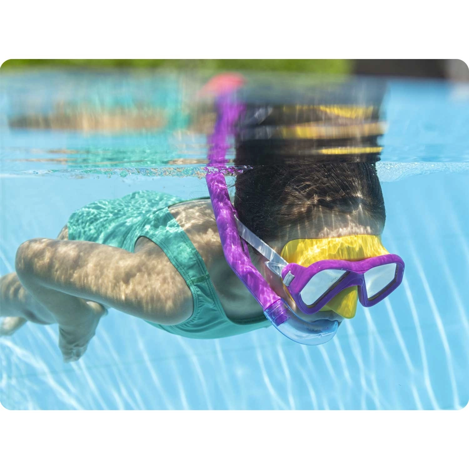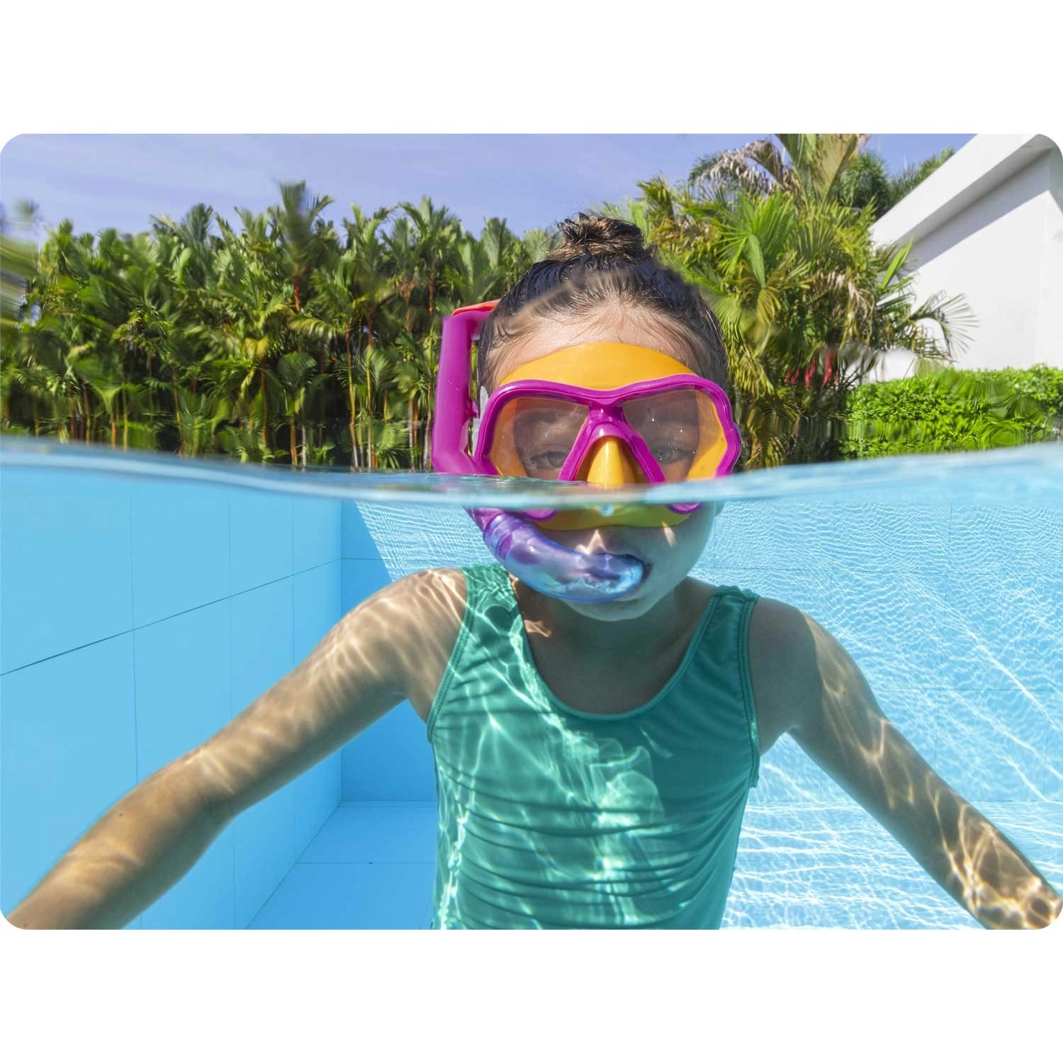 Ovaj lagani i šareni BESTWAY komplet za ronjenje na dah donosi djeci i junior plivačima radost otkrivanja podvodnog svijeta. Maska s polikarbonatnim lećama i UV zaštitom pruža jasan, širok pogled te zahvaljujući mekom brtvilu i podesivom silikonskom remenu savršeno pristaje bez neugodnog curenja.