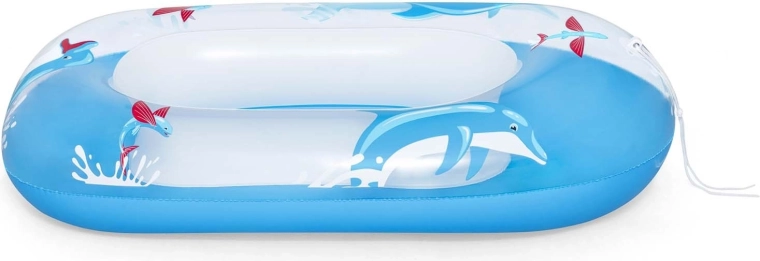 Uživajte u ljetnoj zabavi s dječjim na napuhavanje čamcem BESTWAY s motivom dupina. Lagaan je, stabilan i izrađen od izdržljivog PVC-a, pa je prikladan i za bazen i za more. Za udobnost ima mekano na napuhavanje dno, podstavljene stranice i za sigurnije vođenje vučno uže. Odlično za djecu od 3 do 6 godina.