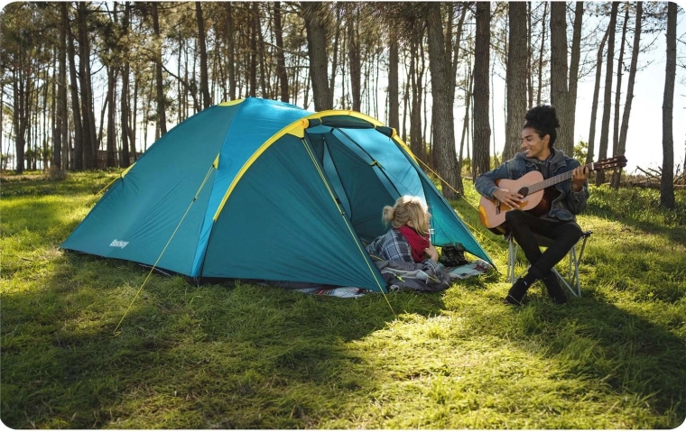 BESTWAY Activeridge Ridge 4 pouzdan je obiteljski i turistički šator za četiri osobe, dizajniran za udobno noćenje od proljeća do jeseni. Izdržljiv poliester 190T i podnica od PE štite od vlage, dok promišljen ventilacijski sustav s mrežom protiv komaraca osigurava protok zraka bez napornog insekata.
