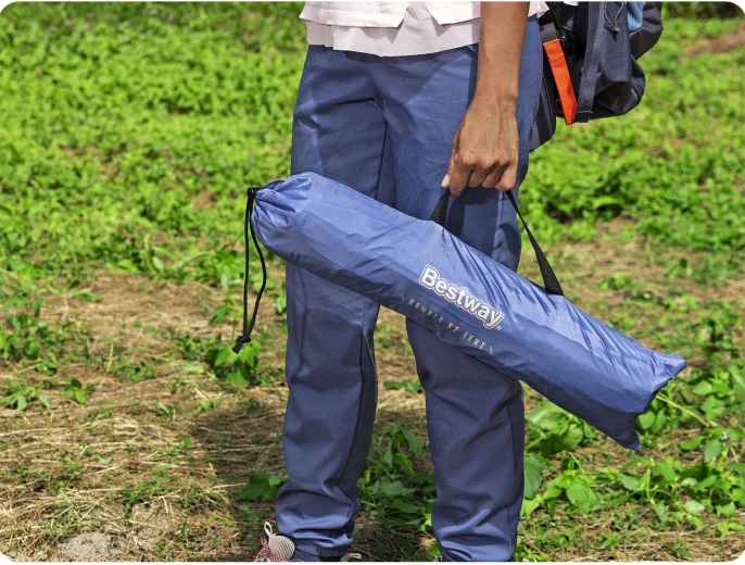 Šator Bestway Ramble X2 dizajniran je za dvije osobe i nudi pouzdano sklonište tijekom kraćih izleta u prirodu ili na plažu. Izdržljiva tkanina poliester 190T s površinskom obradom pruža osnovnu zaštitu od vjetra i slabije kiše (vodeni stupac 300 mm), dok stakloplastične šipke drže konstrukciju čvrstom i fleksibilnom.