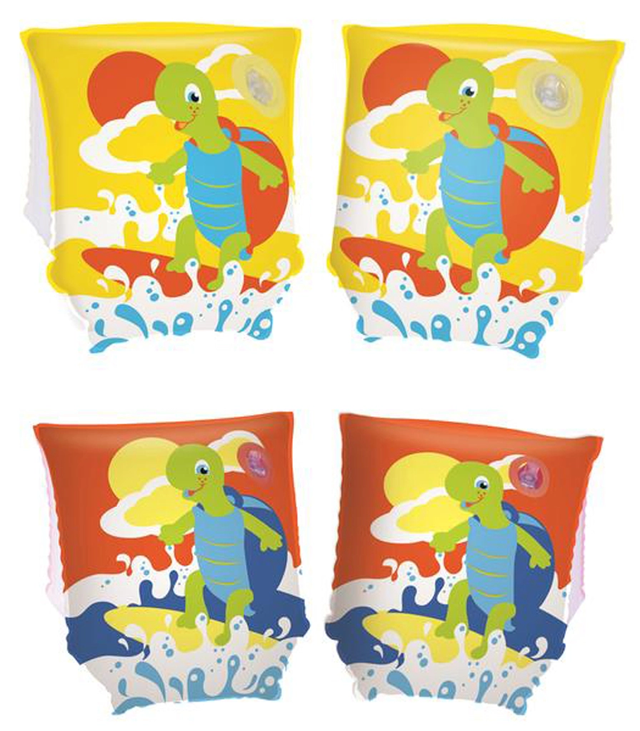 Vesele nafukavajuće rukavice s motivom kornjače pomažu djeci osjećati se sigurnije u vodi i pritom uživati u puno zabave. Zahvaljujući kompaktnim dimenzijama 23 × 15 cm lako se stavljaju, dobro drže na ruci i idealne su za prve korake pri učenju plivanja. Dostupne u različitim varijantama boja (assort).