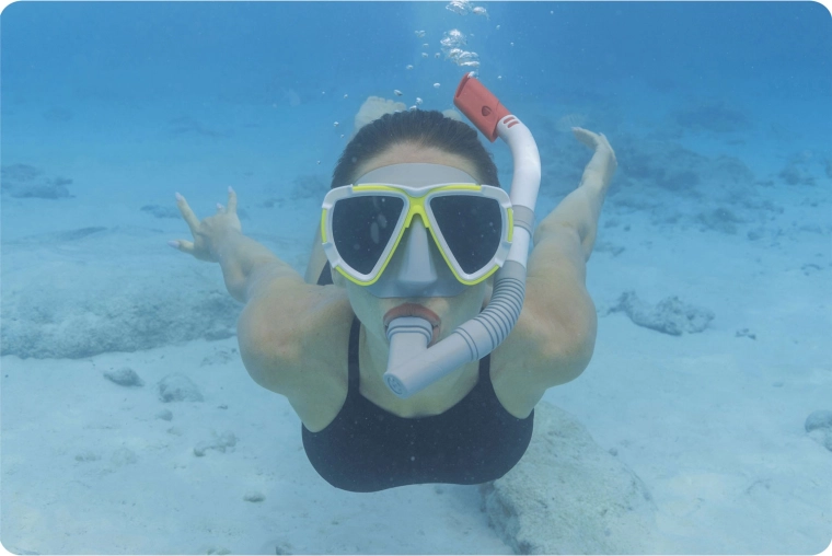 Polikarbonatne leće s UV zaštitom povećavaju otpornost na udarce i štite oči od sunca. Zahvaljujući univerzalnoj veličini i izvedbi bez lateksa, set je prikladan za većinu korisnika od 14 godina naviše, bilo na odmoru na moru ili pri rekreacijskom ronjenju na dah u jezeru.