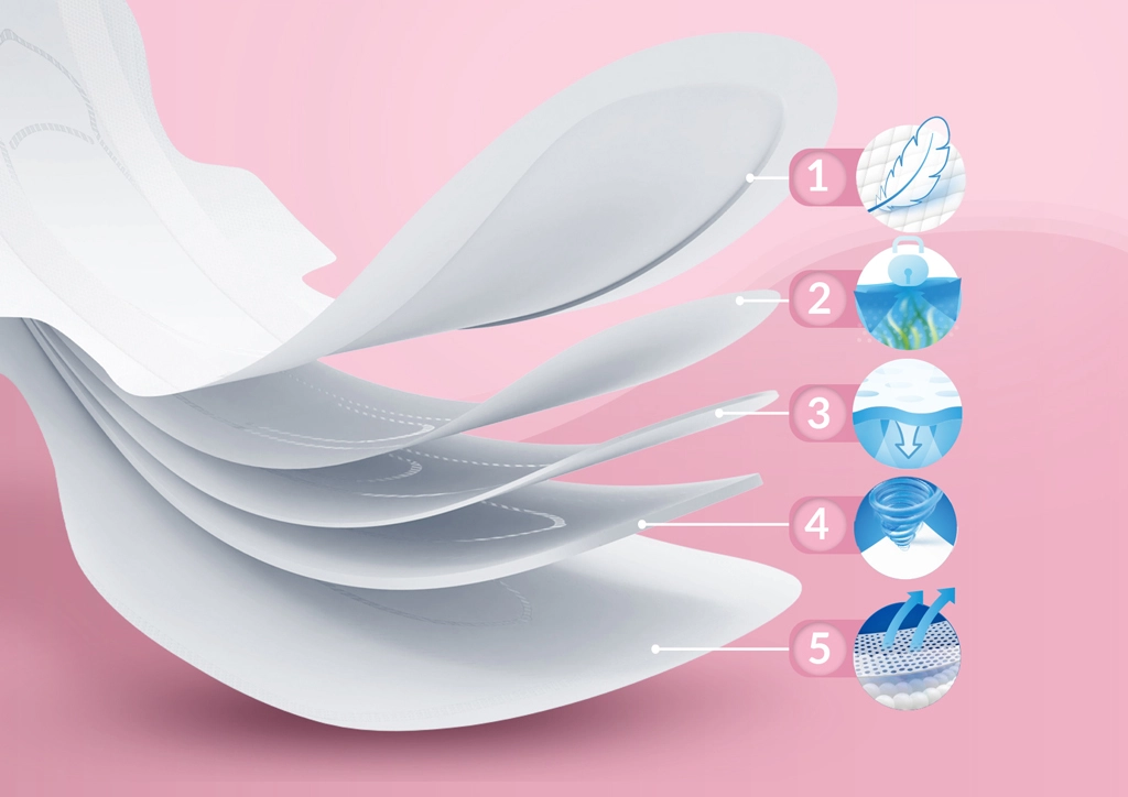 - 5 zaštitnih slojeva – udobnost, brzo i učinkovito upijanje, nepropusnost i prozračnost
