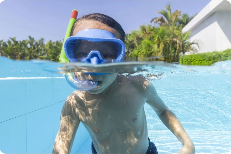 Izdržljive polikarbonatne leće s UV zaštitom osiguravaju čistu vidljivost i sigurnost na suncu i u vodi. Idealno za igre u bazenu i ronjenje na dah u moru.