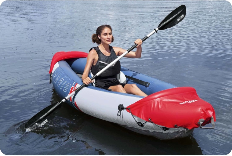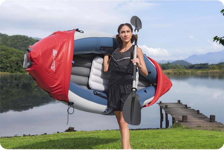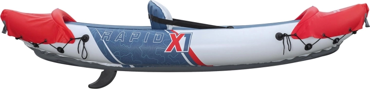 Nafukovací kajak Bestway HYDRO-FORCE Rapid X1 idealan je za rekreativno veslanje na jezerima, mirnim rijekama i priobalju. Zahvaljujući dimenzijama 290 × 91 cm pruža dovoljno prostora i udobnosti, dok robustan PVC materijal i tri odvojene zračne komore donose višu razinu sigurnosti i stabilnosti na vodi.