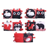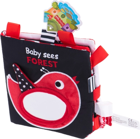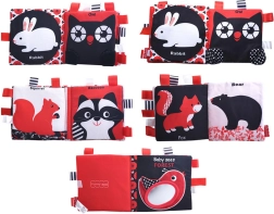 Pripremite vaše dijete za čarobno putovanje otkrivanja svijeta oblika i uzoraka s ovom nevjerojatnom knjigom. Knjiga je dizajnirana u kontrastnim bojama poput crne, bijele i crvene, koje su idealne za vizualnu stimulaciju male djece. Knjiga sadrži četiri tekstilne stranice sa životinjama kao što su ptičica, zeko, sova, lisica, medvjed, vjeverica i rakun.