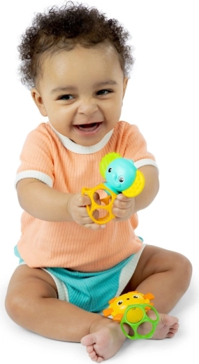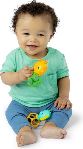 Otkrijte umirujuću zabavu s grickalicama OBALL Soother Pals. Dva simpatična lika – lav i slon – kombiniraju više tekstura za žvakanje, zveckanje i istraživanje. Otvorena mrežasta struktura OBALL Bright Starts potiče pravilan hvat i koordinaciju ruka-oko, dok je lagana konstrukcija idealna za prve pokušaje držanja i trešnje.