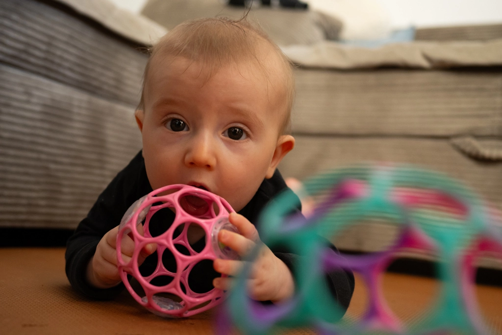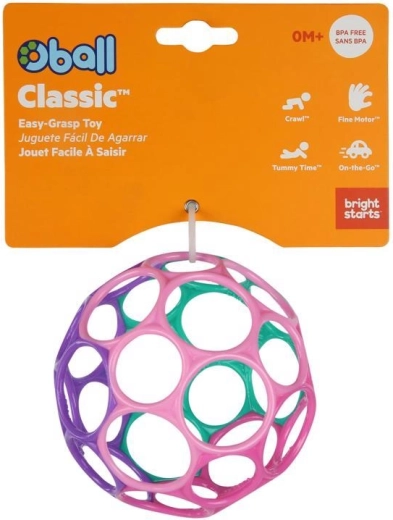 OBALL Classic je omiljena senzorička igračka osmišljena za najmlađu djecu. Lagani rešetkasti dizajn s 32 velika otvora olakšava hvatanje iz svakog kuta, jača finu motoriku i motivira bebu na istraživanje. Mekani, elastični materijal nježan je prema desnima i siguran za svakodnevnu igru.