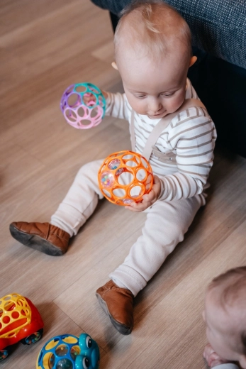 Lagana i elastična loptica OBALL s ikoničnom rešetkastom konstrukcijom idealna je prva igračka za bebe od rođenja. Zahvaljujući 32 otvora lako ju je uhvatiti i sićušnim prstićima, mekana i savitljiva plastika ugodna je za držanje, a svega 41 g težine potiče prve pokušaje hvatanja, trešnje i manipulacije. Izdržljiva, lako se čisti i izvrsna za razvoj motorike i osjetila.