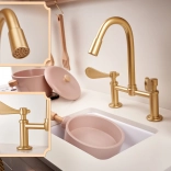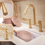 Duboki sudoper s metalno zlatnom slavinom i dvostrukim ručkama potiče igre pranja i pripreme. Praktične police i ormarići drže sve nadohvat ruke.