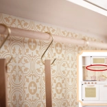 • Realistični detalji: metalno zlatna slavina, viseća letvica s kukicama, ratan efekt na vratima pećnice.