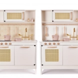 Stilska dječja kuhinjica u retro BOHO dizajnu donosi sate kreativne igre. Ima duboko sudoper sa zlatnom slavinom, upravljačke gumbe, pećnicu s ratan panelom, praktične police i ormariće te bogat drveni pribor. Zahvaljujući svjetlosnim i zvučnim efektima grijaćih ploča igra djeluje realistično i razvija maštu i finu motoriku.