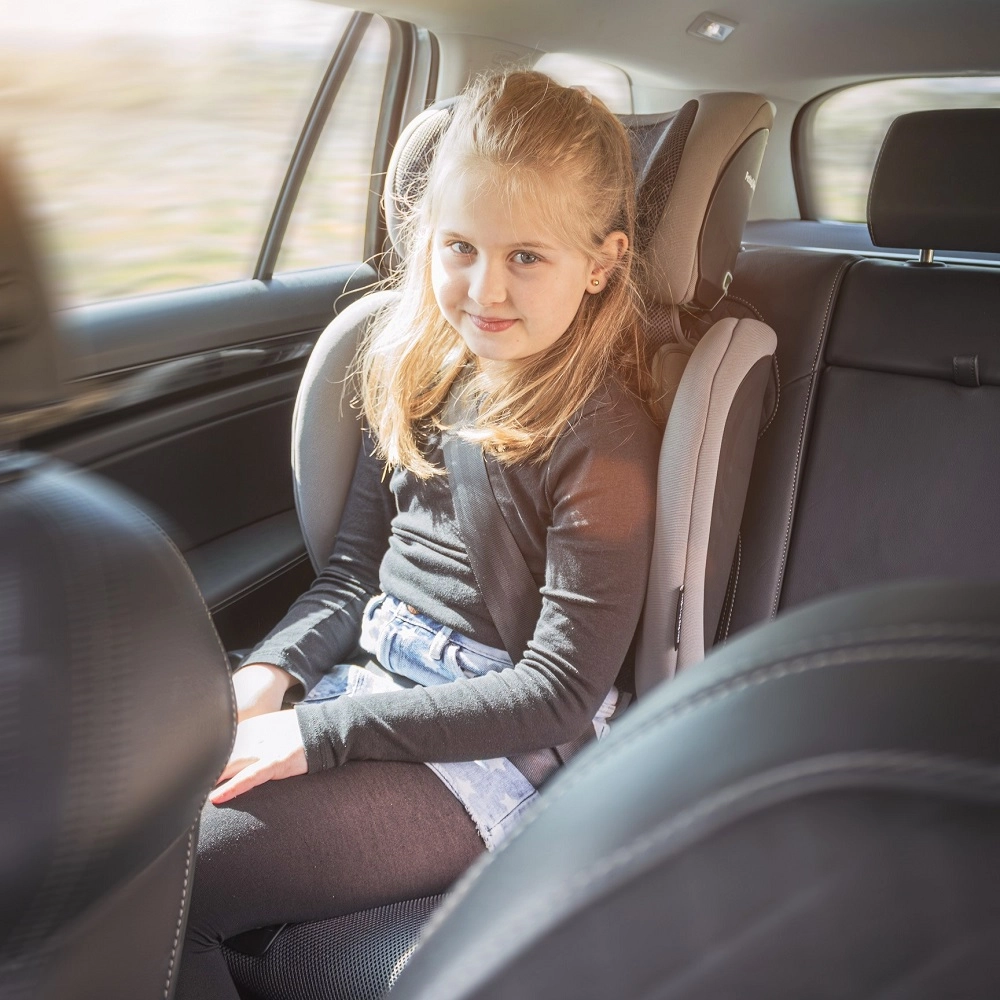 Rastuća autosjedalica za djecu 100–150 cm udovoljava strogom standardu ECE R129 i-Size i spaja maksimalnu sigurnost s vrhunskom udobnošću. Nudi ISOFIX pričvršćenje, podesiv naslon za glavu i proširive bočne štitnike. Prozirna tkanina AIR osigurava izvrsnu cirkulaciju zraka, dok se 4 razine nagiba i vodiči pojasa brinu za ispravno smještanje i udobnost na svakoj vožnji.
