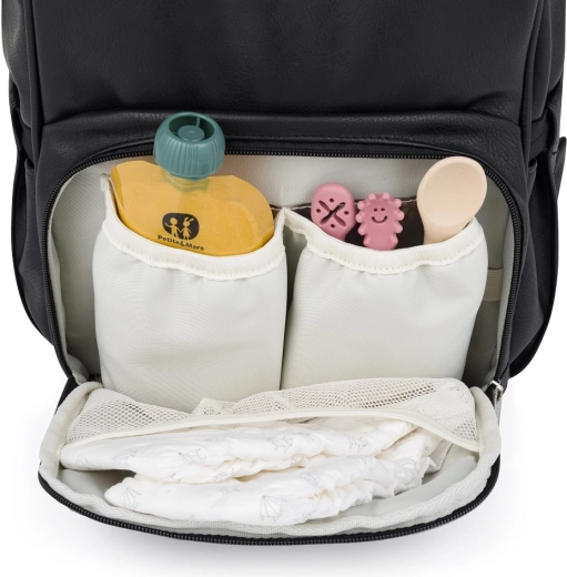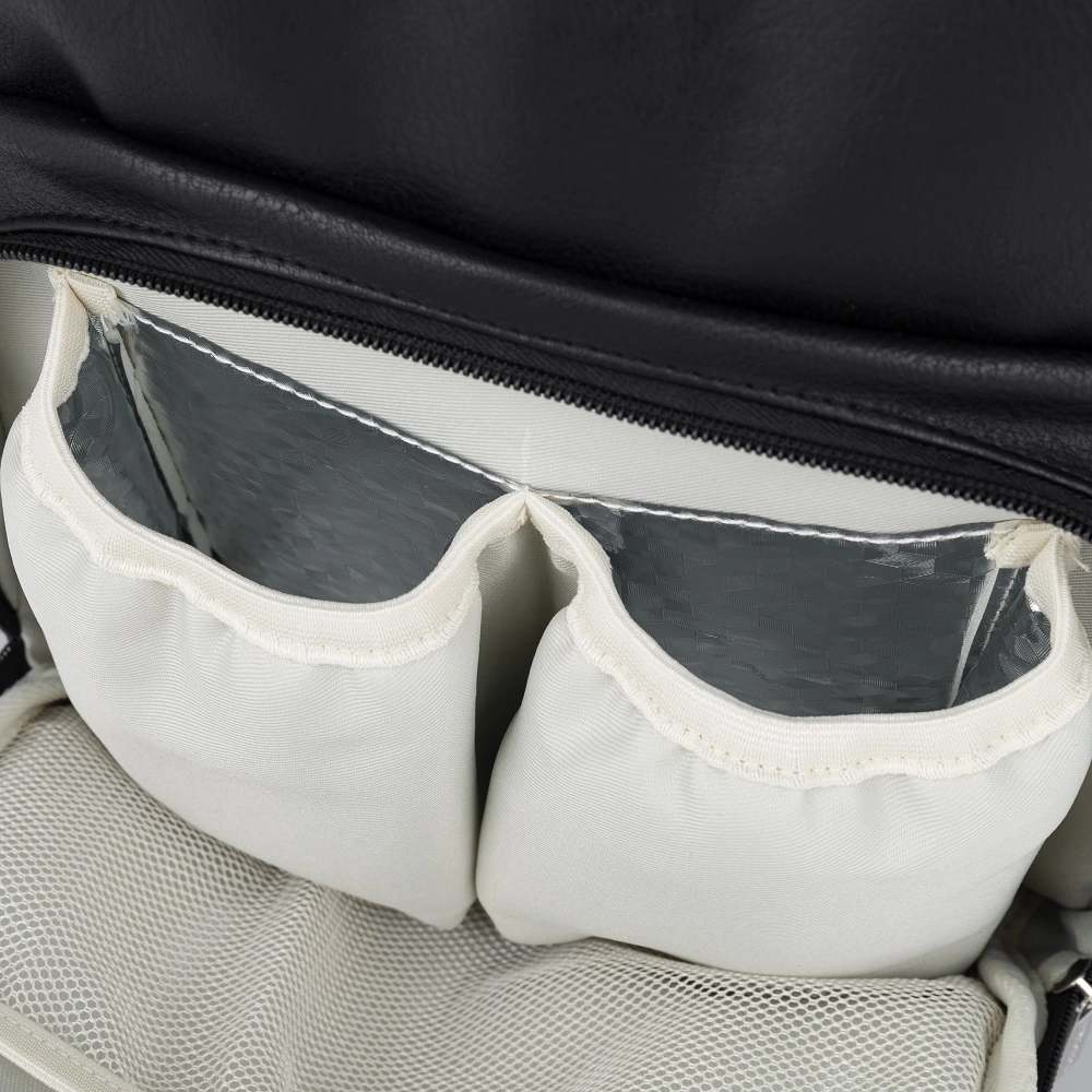 Široko otvaranje s dvosmjernim patentnim zatvaračem i dvije termo pregrade održavaju dječje bočice na odgovarajućoj temperaturi i na putu.