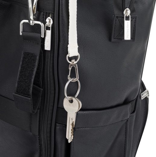 Pregledna unutarnja raspodjela, poseban džep za tablet, otvor za vlažne maramice i vrpca za ključeve za brz pristup potrepštinama.