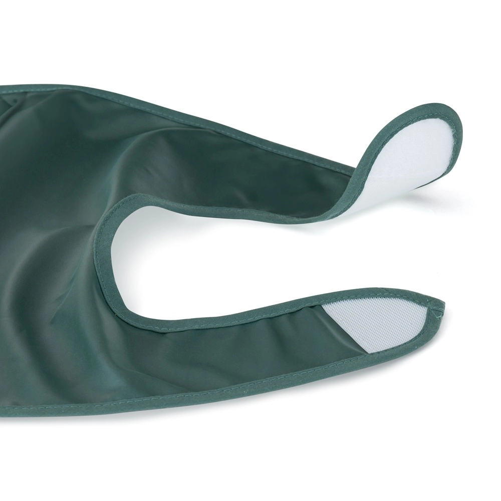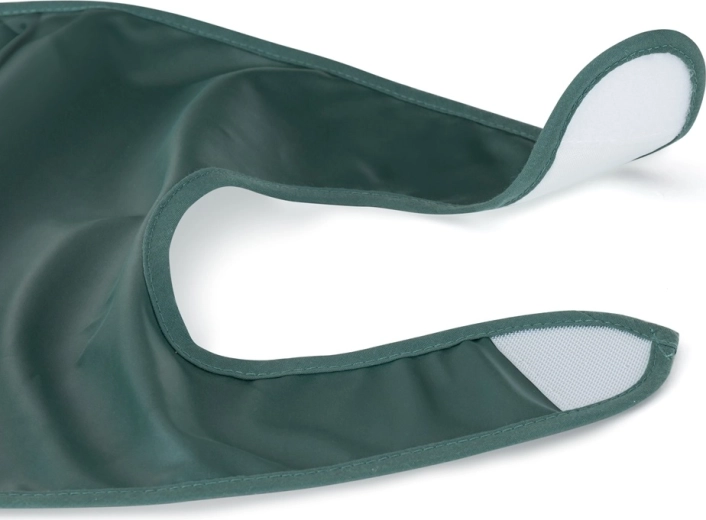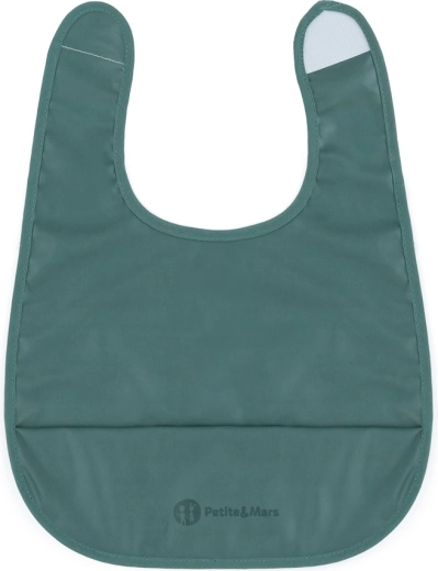 Stilizan i praktičan podbradak PETITE&MARS Nate u nijansi Misty Green održat će vašu bebu čistom i udobnom tijekom jela. Izrađen je od izdržljivog, vodootpornog PU materijala bez PVC-a i ftalata, ima džep za mrvice, nježno podesivo zatvaranje na čičak i lako se čisti jednostavnim brisanjem.