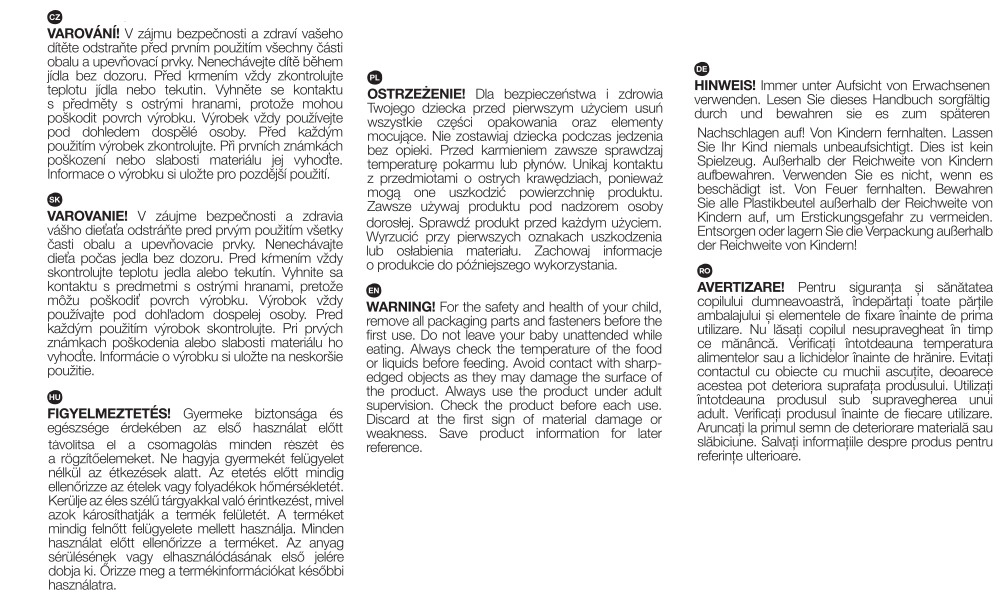 Zahvaljujući četiri položaja kopčanja, podbradica „rastu“ s djetetom i odlično pristaje djeci od 6 mjeseci. Materijal je 100% prehrambeni silikon bez BPA – lako se održava, brzo se briše i prikladan je za perilicu posuđa. Na putu ćete cijeniti mogućnost da podbradicu jednostavno smotate u torbu.