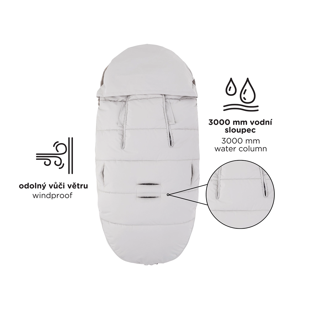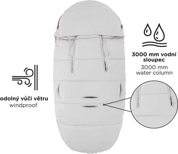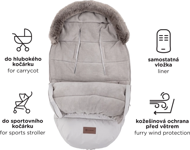 Topla i univerzalna zimska vreća za kolica 4u1 za hladne dane. Nudi ekstra toplinu i meku udobnost, vodoodbojna je i vjetrootporna (3000 mm) s ekološki prihvatljivom BIONIC-FINISH ECO impregnacijom. Zahvaljujući 6 otvora za pojaseve pristaje gotovo svim kolicima, ima odvojivo krzno i cjeloplošne patentne zatvarače za regulaciju temperature i lako prozračivanje.