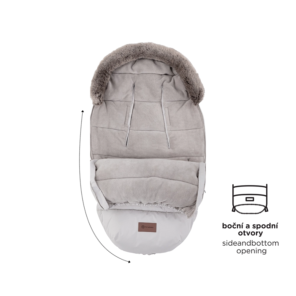 Promišljeni bočni zatvarači po cijeloj dužini omogućuju potpuno skidanje gornjeg dijela, prozračivanje i stvaranje zasebne uložene podloge od donjeg dijela. U donjem dijelu zatvarači stvaraju praktičan otvor za nožice. Pametan zakrivljeni protuklizni džep na stražnjoj strani pomaže da vreća čvrsto stoji na mjestu, a odvojivo krzno olakšava održavanje.