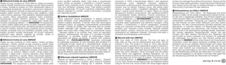 Set Petite&Mars Amigos nudi sigurnu i kreativnu igru u vodi za djecu od 6 mjeseci. Svaka figurica se nakon uranjanja napuni vodom i kroz otvore je zabavno raspršuje. Meki silikon ugodan je u ruci, a stiskanje jača hvat i koordinaciju oka i ruke.