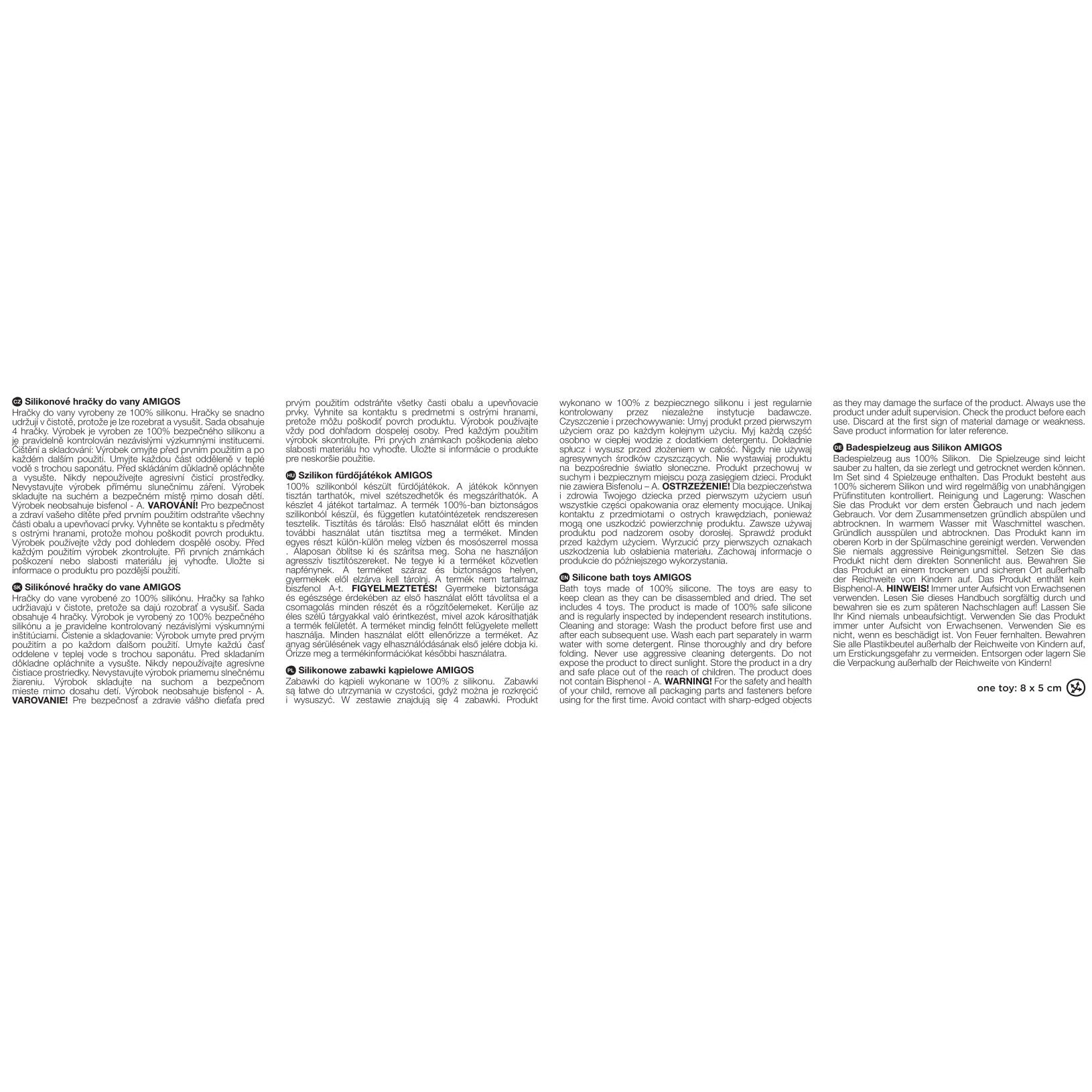 Praktična konstrukcija iz dva dijela (gornji i donji dio) omogućuje da se igračke nakon kupanja odvrnu, temeljito operu i osuše – bez ostataka vode iznutra. Zahvaljujući kompaktnim dimenzijama, stvorene su za kadu, bazen i putovanja.